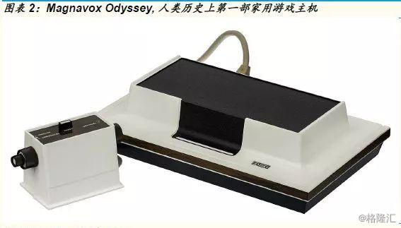 几乎就在街机产业启动的同一时间,人类历史上第一部家用游戏主机也诞生了:1972年9月,美国电子产品制造商Magnavox发布了Odyssey游戏主机。Magnavox Odyssey由集成电路构成基板,具备简单的控制器,视频信号输出到电视机,理论上适合任何有电视的家庭用户。由于“电子游戏”这个概念尚未诞生,在广告宣传中使用了“闭路电视电子娱乐场”这个冗长滑稽的概念。这台游戏主机搭载的游戏包括乒乓球、滑雪、网球、猫捉老鼠……大部分的玩法都与Pong非常类似。