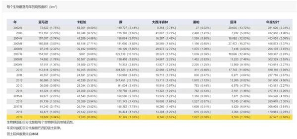 再看看INPE公布的历年亚马逊火灾烧毁的森林面积: