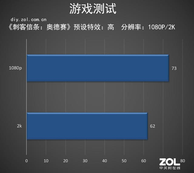 最后仍是我们目前最吃配置的三A游戏:《刺客信条:奥德赛》,这款游戏类型是开放式沙盒游戏,游戏帧数和画面对游戏体验影响很大,即使对硬件如此苛刻的游戏,英特尔酷睿i9-9900K仍能在2k分辨率保证60帧,1080p也达到了73帧,锋芒毕露,实属不易。