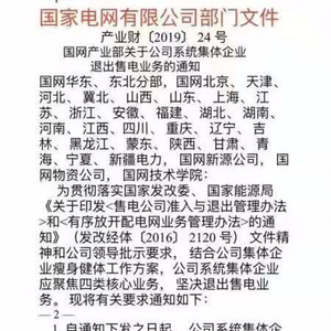 流传截图显示,国家电网公司要求各省级电力公司贯彻落实国家发改委、国家能源局《关于印发和的通知》(发改经体[2016]2120号)文件精神和公司领导批示要求,结合公司集体企业瘦身健体工作方案,公司系统集体企业应聚焦四类核心业务,坚决退出售电业务。
