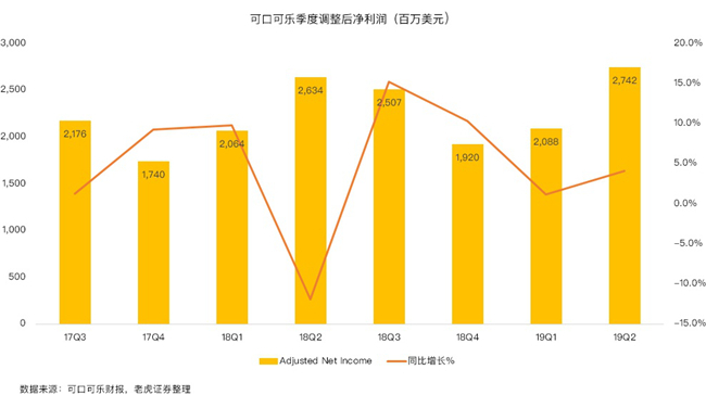 老虎证券投研团队认为,本季度强劲的业绩增长是对上一季度的确认和延续,营收连续下滑的趋势在2019年迎来了拐点。公司持续受益于全品类饮料战略,业务重心从销量增长转向销量与价值协同增长。