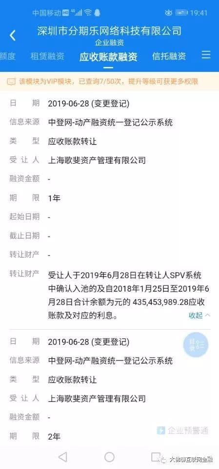 上海爱建信托给分期乐授信了5亿期限为1年的资金,截止今年11月28日到期,如果到期后,信托公司不续借,影响也不小,这也是一个值得关注的点。