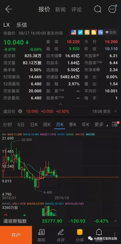 乐信上市发行价9美元,截止8月26日,收盘价是10.04美元,跌幅0.07%。