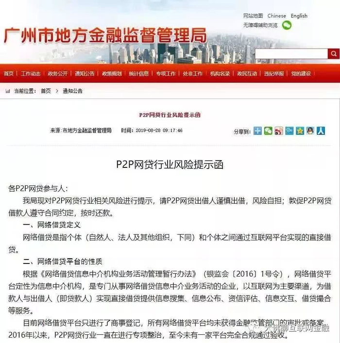 最新的消息,就在8月28日,广州市地方金融监管局发布了《P2P网贷行业风险提示函》。