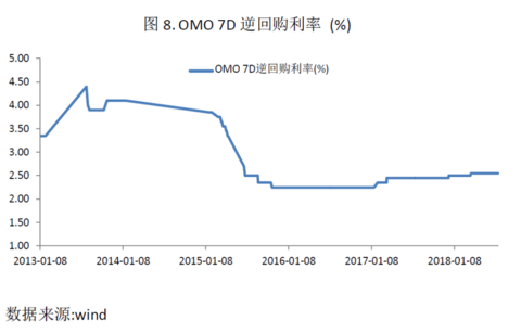 央行公开市场操作中的7天逆回购利率理论上构成R007的理论下限,2016年央行逆回购操作利率为2.25%,经历2017年和2018年的4次上调后,目前央行7天逆回购操作利率为2.55%。
