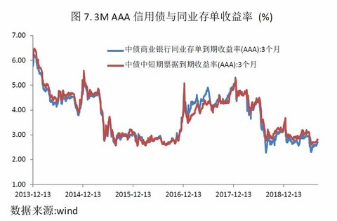 事实上,2018年以来3M同业存单收益率的下行速度甚至超过了3M AAA非金融企业债务融资工具,主要原因是2018年起实施《关于资管产品增值税有关问题的通知》后投资同业存单(较之同期限信用债)的增值税减免优势凸显。