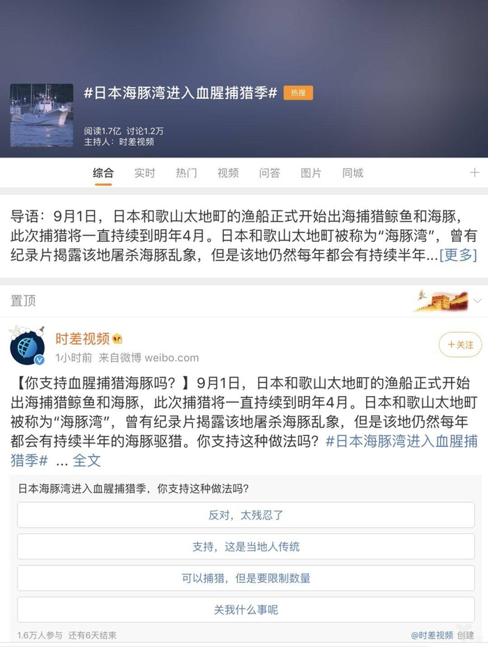 几天前,#日本海豚湾进入血腥捕猎季#这个话题登上了微博热搜排行榜前十。