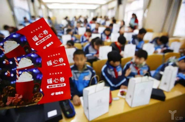 2018年底,南京奈雪的茶和东方福来德携手,为南京市聋人学校送去圣诞祝福,用欧包和奶茶传递关怀。