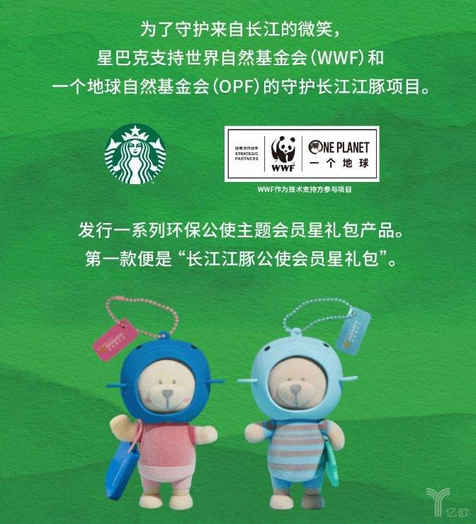 而星巴克在今年七月开启星守护计划,推出长江江豚公使会员星礼包,支持世界自然基金会和“一个地球”自然基金会的守护长江江豚项目,共同守护来自长江的微笑。