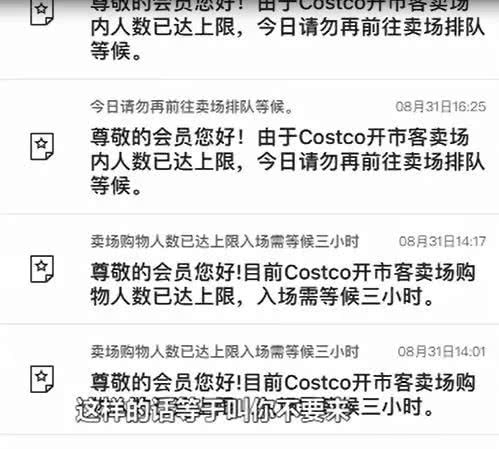 消费者:开市客这里每天发信息,要排队两小时、三小时,像这种环境接受不了。每天都是排队两小时,这样的话等于叫你不要来。他们说没什么东西可以买。