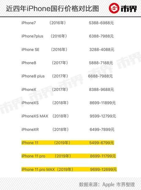 去年iPhone XR国行首发价格6499元起,今年继承iPhone XR的iPhone 11国行售价5499元起,iPhone 11 Pro售价8699元起;iPhone11 Pro Max售价9599元起。