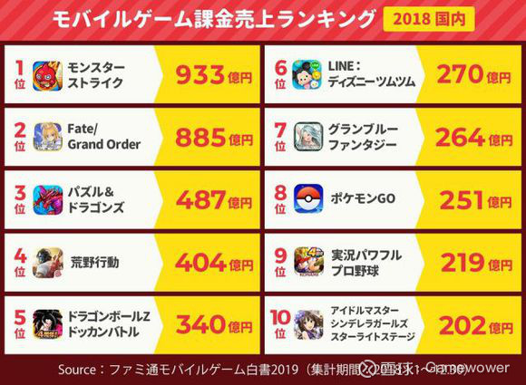 至于日本游戏玩家与欧美玩家、中国玩家到底有什么不同,这里很难用简单的几句话去说清楚,我们借用一张图说明,2018年日本国内收入第一的游戏是《怪物弹珠》,而这款游戏推出的时间是2013年。
