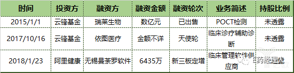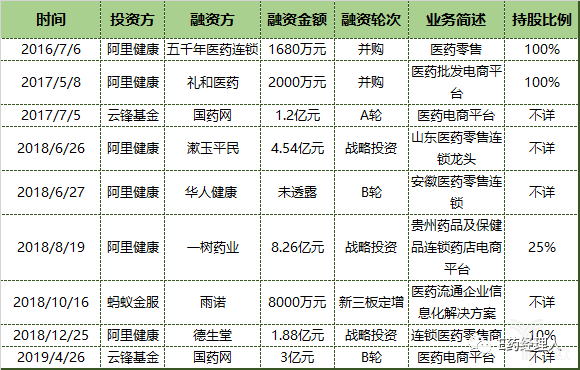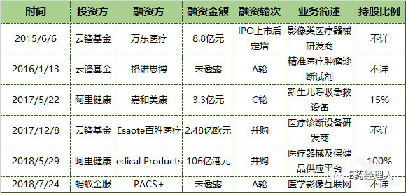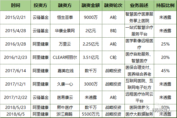 阿里健康成立之后,与云锋基金配合,进行阿里医疗健康领域的投资并购。