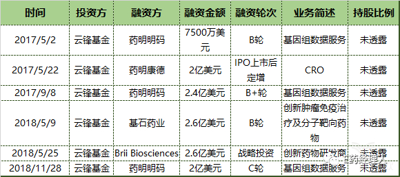 除了医疗服务、医药器械,阿里连最复杂、壁垒最高的医药工业也有涉及,比如参股了国内CRO龙头药明康德和创新肿瘤免疫治疗及分子靶向药物制造商基石药业,这两位均已在香港实现上市,云锋基金还对基因组数据服务商药明明码追加了2次投资。值得注意的是,相对其他领域而言,阿里在创新药及基因两个前沿领域,虽然只投资了4家企业,但投资额却达到了87亿元之多。