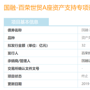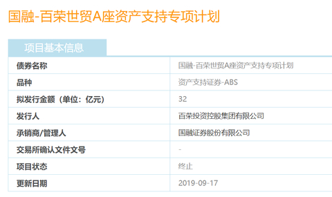 9月17日早间,据上交所公告,国融-百荣世贸A座资产支持专项计划状态更新为“终止”。