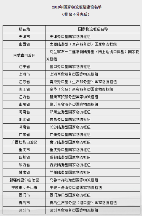 2019年国家物流枢纽建设名单发布 23个城市入选