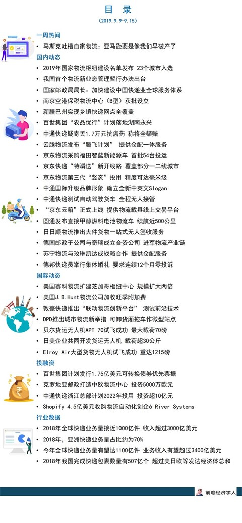 原标题:前瞻快递产业全球周报第7期:马斯克吐槽自家物流 亚马逊要是像我们早破产了 来源:前瞻网