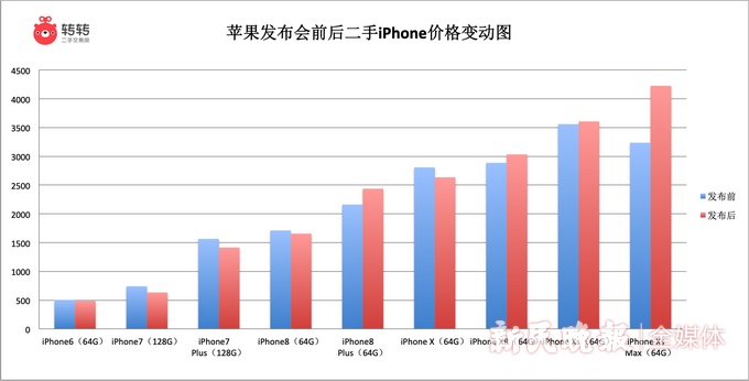 新iPhone价格出现波动,二手iPhone的主力机型也受到一定影响。转转手机行情显示,苹果发布会前后iPhone XR、iPhone X和iPhone 8 Plus 等二手iPhone在转转平台上的成交价已出现明显波动。整体来看,除iPhone 8 Plus之外,iPhone旧款机型在转转平台的交易价格都有不同程度下跌,而iPhone XR、iPhone Xs、iPhone Xs Max三款次新款的二手iPhone交易价不降反增,其中二手iPhone Xs Max最高涨了600元左右。