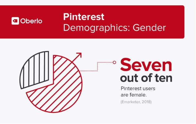 Pinterest的统计数据显示,该平台以女性用户为主,女性用户是男性用户的两倍多。更具体地说,每十个Pinterest用户中就有七个是女性。
