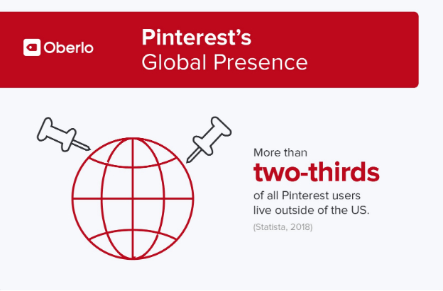 值得注意的是Pinterest国际用户的使用量增长。2016年其美国的用户数量超过国际用户。从那时起,Pinterest的国际用户数量增长了近2.5倍,美国的8500万用户占其2.15亿国际用户的40%。考虑到这以统计数据,你可能需要考虑修改营销策略,使其更加关注国际用户。