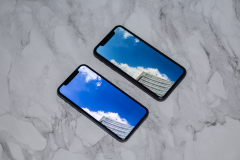 iPhone 11(上)与iPhone 11 Pro(下)屏幕对比
