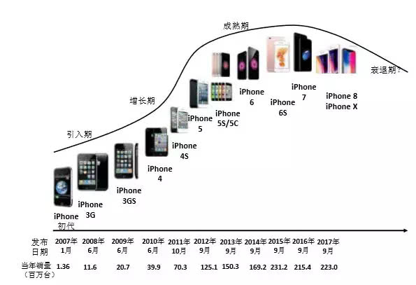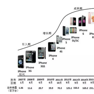回看苹果公司这10年,每年苹果手机的销量和发布日期标在横轴上,你就能够得到一张iPhone的产品生命周期图。