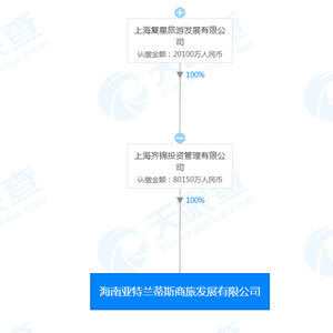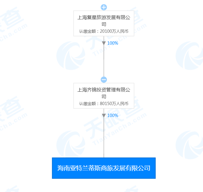 天眼查信息显示:上海复星旅游发展有限公司100%持有上海齐锦投资管理有限公司的股权,上海齐锦投资管理有限公司有100%持有海南亚特兰蒂斯商旅发展有限公司的股权,也就是说这家公司其实100%股权为上海复星旅游发展有限公司持有。
