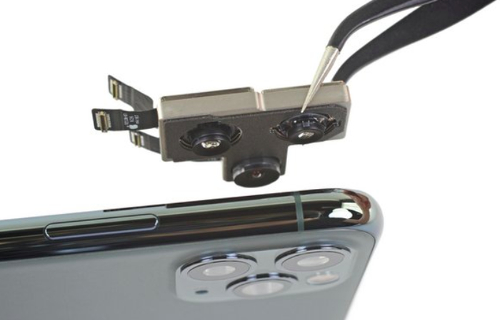 这次 iPhone 的三摄像头都被固定在了一起,但每个摄像头都有各自独立的电缆,因为电缆不再束缚在电池下,所以 iFixit 拆卸也比以往轻松了许多。