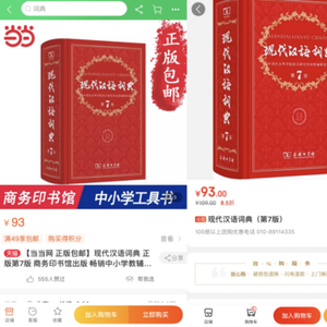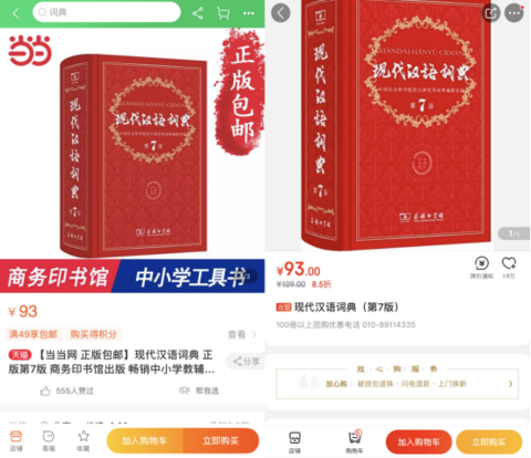2016年9月,商务印书馆出版《现代汉语词典》第7版,定价为109元。但在当当网、京东等电商渠道,《现代汉语词典》第7版售价均为93元,低于APP定价,这也是引发网友热议的原因。