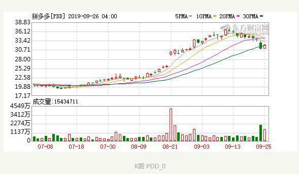 据悉,拼多多股价在近期出现一轮连续上涨,9月12日,拼多多更是以36.67美元的股价创下历史新高。