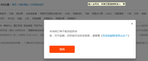 赵先生称,当他发现还有半个小时,货款就会自动打给卖家时,自己选择了延期收货。随后,他想在淘宝上对卖家进行投诉,却发现淘宝显示“未完结订单不能发起投诉”。