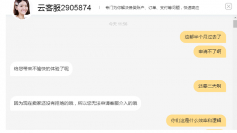其二,繁琐而又重复的申请流程让赵先生疲不堪。“3天又3天,这陷入死循环中,到底什么时候是个头?难道客户只能被动的等待?如果商家恶意,难道就无限期拖下去?”赵先生认为,平台这种处理方式无异于在故意纵容商家,这种“无法申请投诉、无法申请人工介入”的拖沓处理方式,无疑为无良卖家的拖延操作提供了更多的空间。