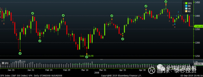 最后,我们考察见顶后的大幅下挫,特别是雷曼破产引发的市场巨幅震荡,考察那几天的市场情绪是如何崩溃的。