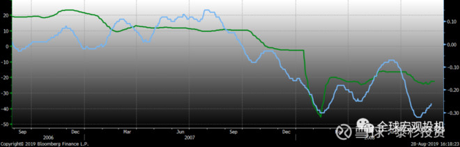 我们看到,金融危机后,美国公司仅在2016年一度陷入盈利负增长,特朗普当选后,在减税和中国刺激政策带动下,美股公司盈利保持了大幅上升势头。但进入2019年后,美股公司盈利急速下降,二季度勉强维持了正增长,但分析师预期数据已经显示了三季度标普公司盈利将为负数。要记得2007年10月正好也是美股盈利转负时美股见顶。