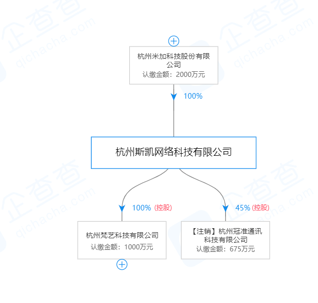 值得一提的是,米加科技100%持股的杭州斯凯网络科技有限公(下称“斯凯网络”)曾是美股上市公司。