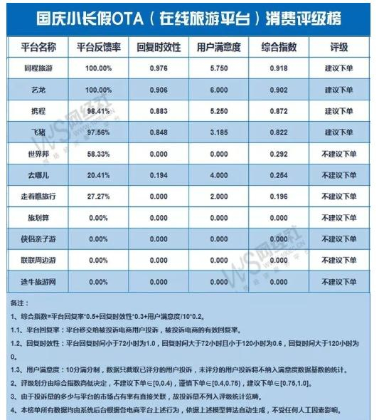10月7日,国内知名电商智库——网经社电子商务研究中心发布《国庆小长假OTA消费评级榜》。途牛以最差评获“不建议下单”评级。