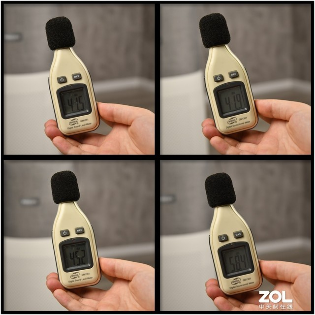 ●噪音测试:在环境噪音41.5dB的条件下,分别记录睡眠模式、智能模式(中档位)、劲速模式的噪音表现,距产品1m处分别读数。