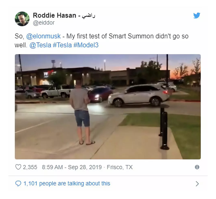 推特网友@Roddie Hasan 是首批差评用户之一,在他拍的视频里面,处于增强召唤状态下的 Model 3 差点结结实实地撞上了一辆讴歌 RDX:
