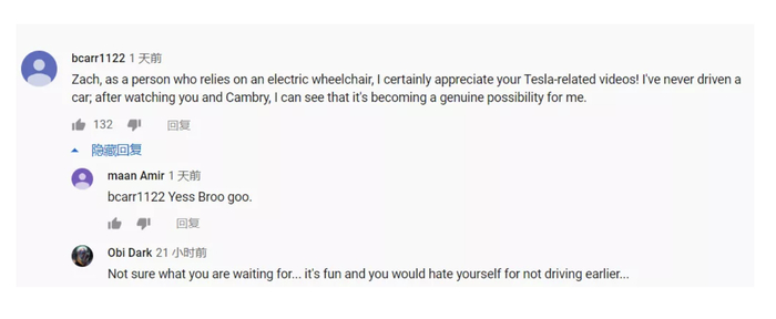 这个视频上传仅仅 2 天,就已经在 YouTube 上获得了接近 113 万次的播放和 5 万个点赞。有从未开过车的残疾人网友甚至表示,「原来我也有机会开车」。