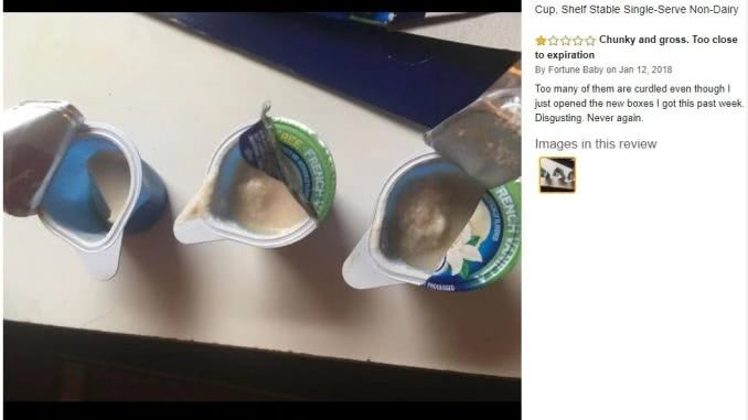 在浏览亚马逊网站上的杂货和美食分类可以发现,不少顾客收到过期的辣酱、牛肉干、格兰诺拉燕麦卷、婴儿配方奶粉和婴儿食品,甚至还有带着“腐臭气味”的咖啡奶精。2017年就已经停产的Teavana系列产品,包括冰糖和水果茶,此前仍在亚马逊上销售。一家专门研究亚马逊市场的数据分析公司在分析亚马逊网站上100种最畅销的食品后发现,至少有40%的买家对过期商品的投诉超过5起。