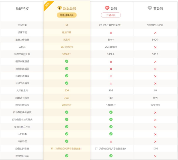 也就是说你买五年以上的百度网盘超级会员才持平一个5TB移动硬盘的价格,但是百度网盘会让你一直买下去。