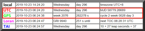UTC时跳秒,因为地球自转速度变化导致UTC时与天文测量的世界时产生偏差,UTC时间会不定期增加或减少秒数。当前,这个偏差已达18秒。下图可以看到,GPS时表征的时间和本地时间一致,都为UTC时加18秒。