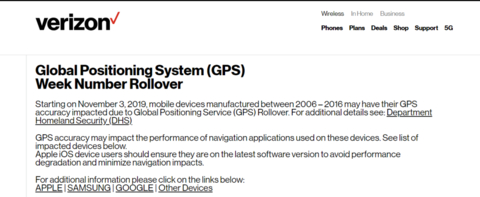 当然,从这次iPhone的公告来看,GPS周数翻转也会对手机设备造成影响。事实上,受到影响的手机不仅仅是iPhone,美国移动网络运营商也在最近发出公告,建议持有2006年至2016年之间生产的移动设备的用户,尽快更新到最新的软件版本,避免导航应用的准确性受到影响,在其列出的受影响设备中,包含了苹果、三星、HTC、摩托罗拉等众多手机品牌。