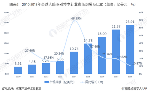 整体来看,2010-2018年,人脸识别技术行业市场规模不断扩大,增速处于高速增长区间。预计未来人脸识别技术将不断发展,其市场规模还会不断增长。