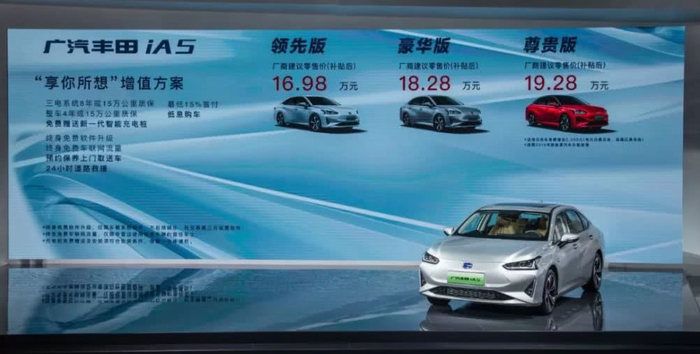 2019 年 9 月 5 日,广汽丰田 iA5 在成都正式上市。这款车有两个点值得说说,首先,这是广汽丰田旗下头顶广汽 G 字 Logo 的车型;其次,Ta 是广汽丰田旗下的第一款纯电动轿车。