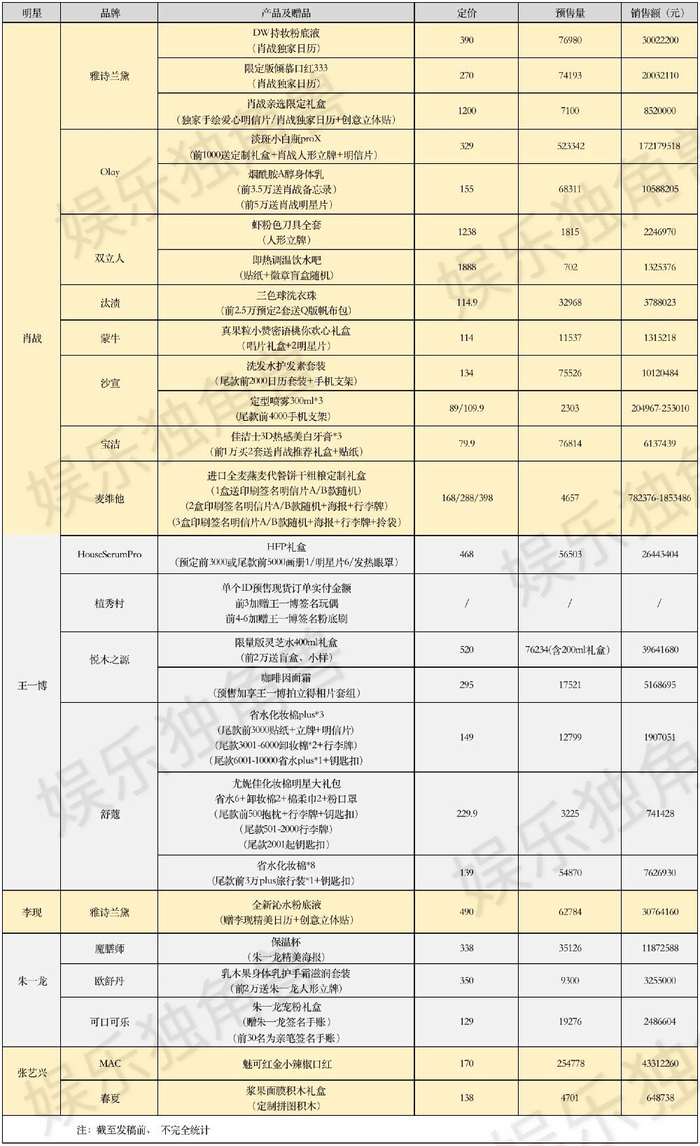 放眼双十一品牌预售战,肖战代言的OLAY小白瓶、雅诗兰黛DW粉底液,王一博代言的悦木之源灵芝水、HFP原液、海飞丝防脱发套装,以及李现代言的雅诗兰黛沁水粉底液、朱一龙的膳魔师保温杯预售额均已突破千万,且还在不断上涨。