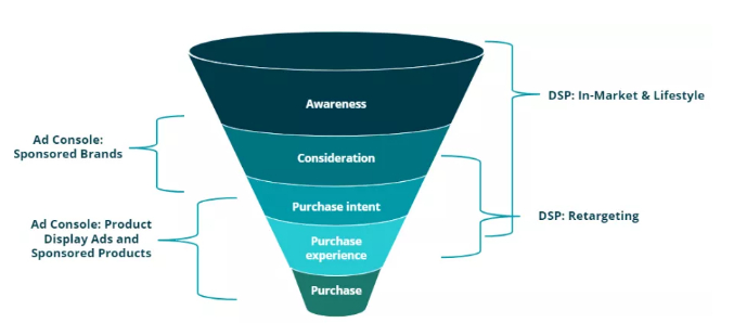 以下是亚马逊广告在整个漏斗中的适用性: