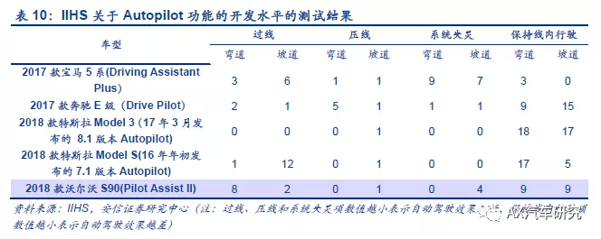 IIHS为考察市面上智能驾驶功能的可靠性和完善度,选择了5款含有L2智能驾驶功能的车辆。结果显示, Model 3的表现最好,其次是采用老版本软件的Model S和采用最新软件的奔驰E级,沃尔沃S90表现排在第4位,排名垫底的是宝马5系,几乎所有路段都出现了系统解除或偏离车道的问题。