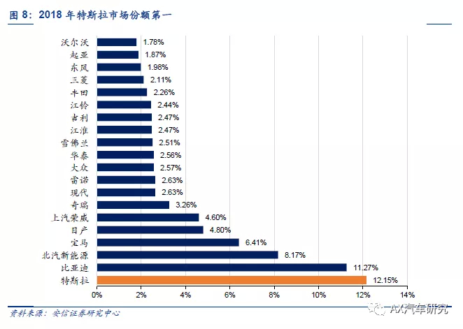 特斯拉在进入市场10年后,成为最受欢迎的纯电动车企,2018年以全年24.5万辆的成绩,超越比亚迪,成为全球电动车销量王。其中,Model 3在2018年12月以单月销量2.5万辆打破纪录,以全年销量14.58万辆站稳全球新能源车型的第一把交椅。