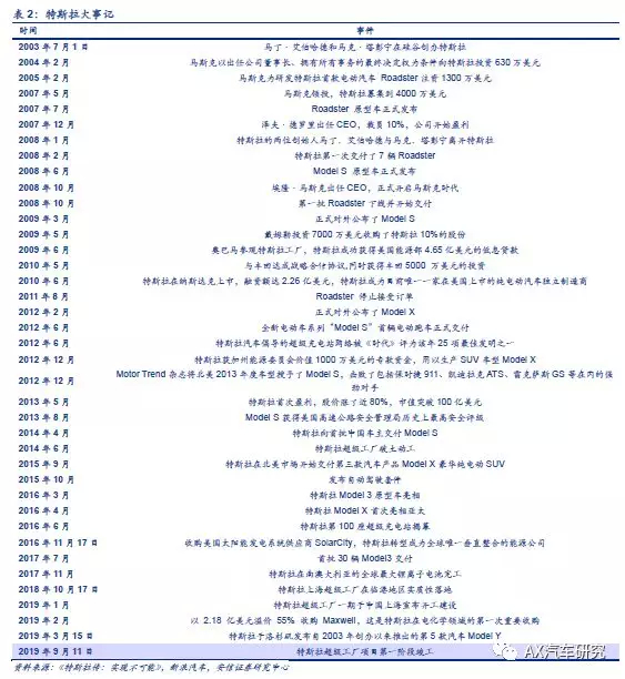 2003年7月1日,马丁·艾伯哈德和马克·塔彭宁创建了一家电动汽车公司,为致敬发明家尼古拉·特斯拉将其命名为特斯拉公司。2004年,特斯拉历史上最重要的人物——马斯克领导了A轮融资并成为特斯拉董事长,2006年,马斯克提出了特斯拉“Master Plan”三步走战略,2010年,特斯拉成功在美国纳斯达克上市。2016年,公司以 2.6亿美元收购SolarCity 22%股权,推出家用储能设备Powerwall和商业储能设备Powerpack。